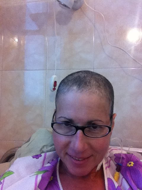 On the hair front, it’s still holding strong. Kristy and I have a race to see whose will fall out fastest, but so far, my little numbs are holding tight. Shoot, it’s not even as grey as it seemed when they first shaved it. Yes, and this gown may be a keeper, they come in a wide variety of blues, purple, and pinks. This may catch-on, I could be a trend setter.